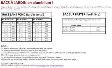 Bacs à jardin en aluminium